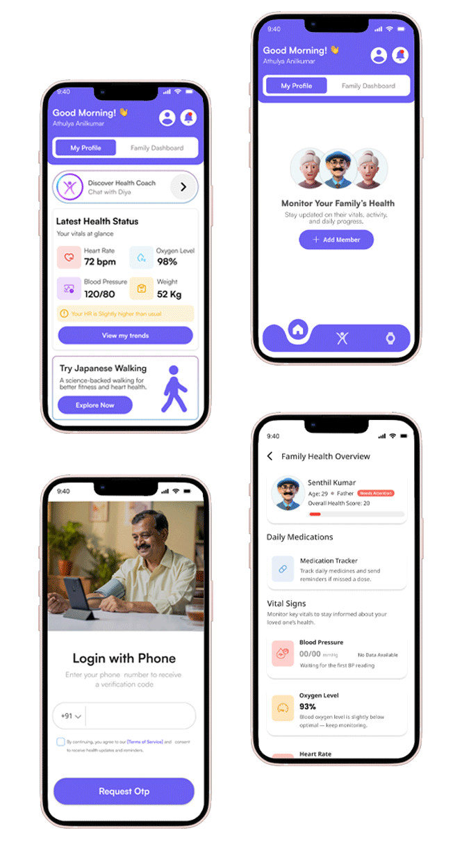 It started with a truth we couldn’t ignore — most diseases today aren’t sudden; they’re silent. Non-communicable diseases (NCDs) like heart disease, diabetes, and hypertension claim millions of lives every year — yet most of these deaths are preventable with the right monitoring and guidance. That’s why Future Health was born — to make preventive care simple, connected, and accessible for everyone. By combining intelligent AI, medical-grade devices, and care coordinators, we help people understand their health before it turns into a crisis.