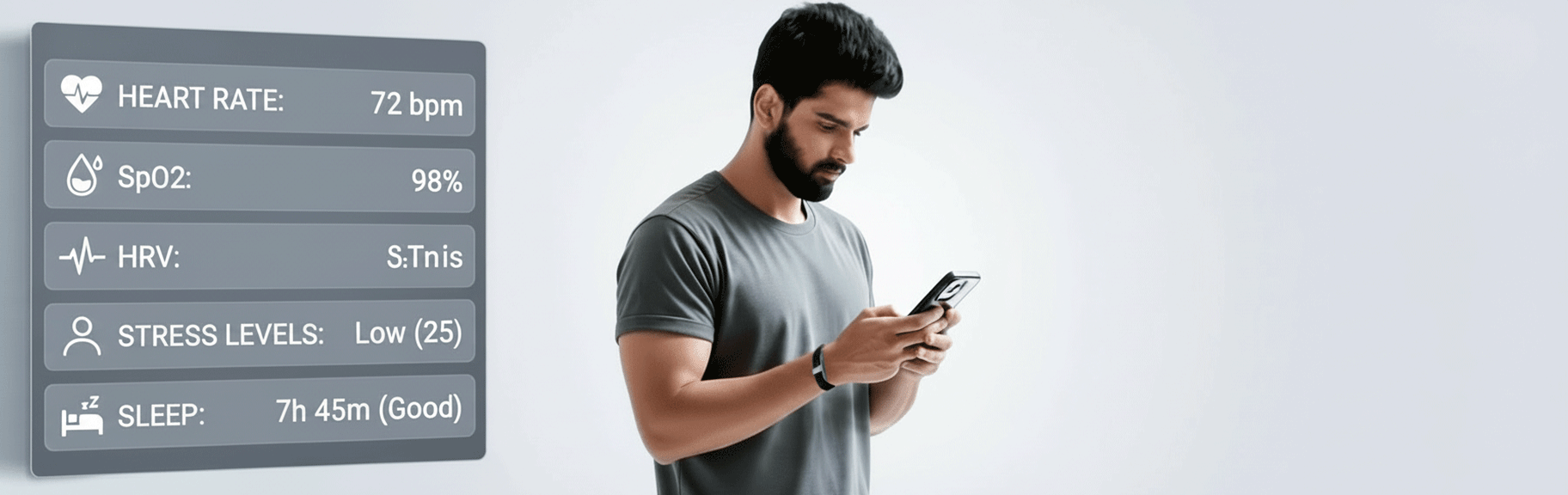 Your band captures your sleep duration and recovery patterns overnight. The Future Health App helps you understand how well your body rested and how ready you are for the day ahead.